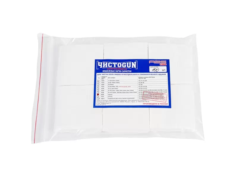Патчи ЧИСТОGUN фланель, к.12-28, квадрат 60х60 мм, 100 шт., белый