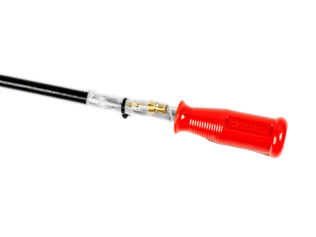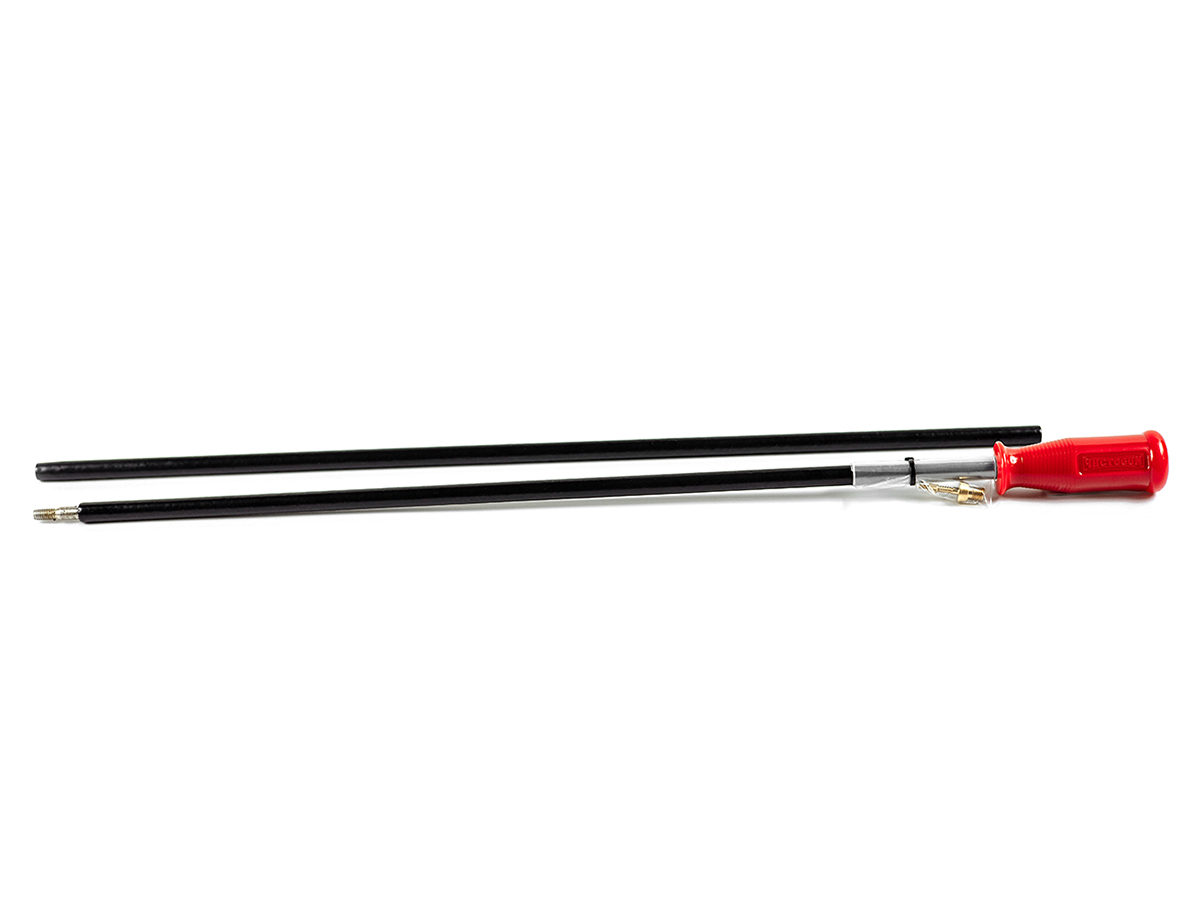Алюминиевый двухсекционный шомпол для чистки гладкоствольного оружия. Выполнен из цельного куска алюминиевого сплава, сверху покрыт нейлоновой оплеткой черного цвета. Рукоять шомпола жестко закреплена.