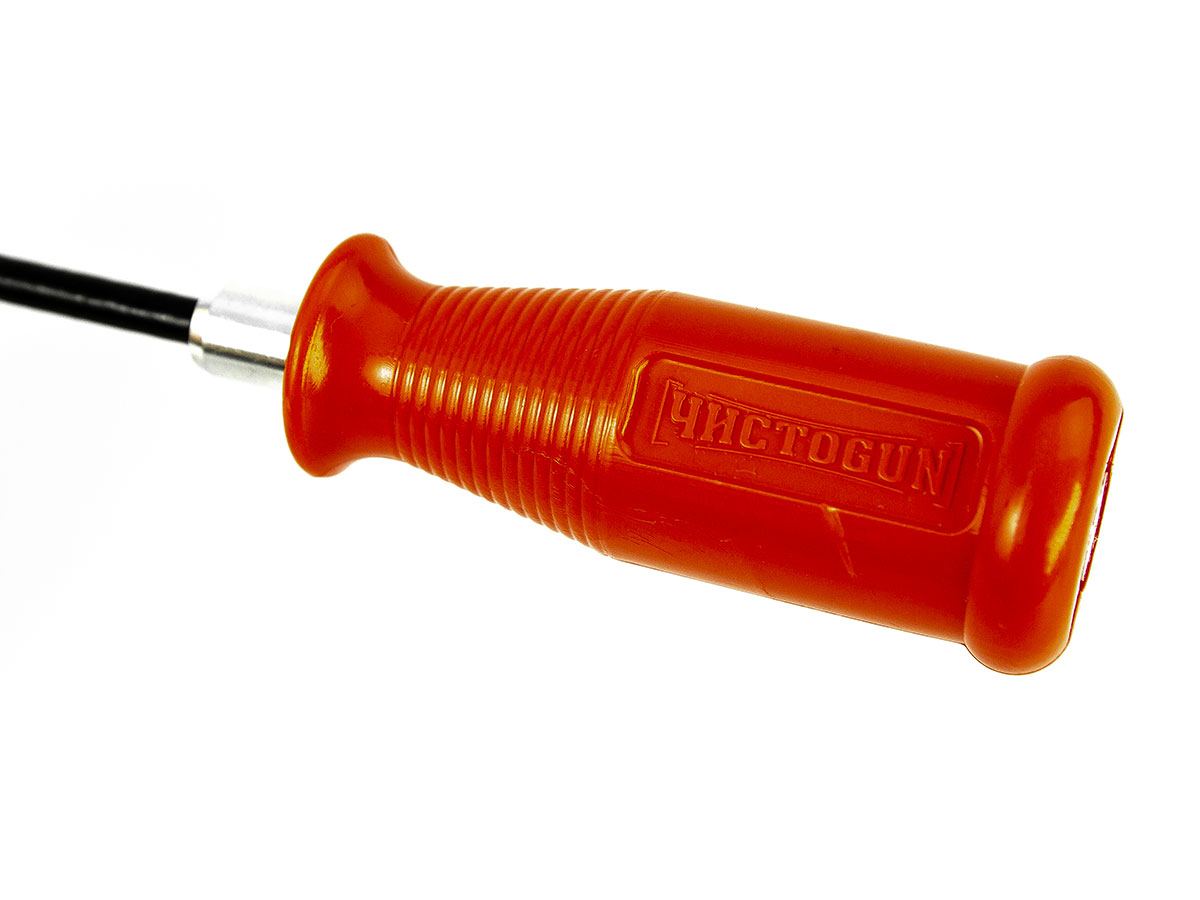 Стальной односекционный шомпол для чистки нарезного охотничьего оружия. Выполнен из цельного куска нержавеющей стали, сверху покрыт нейлоновой оплеткой черного цвета. Рукоять шомпола оснащена специальным подшипником, который помогает проворачивать ершик по нарезке во время хода по стволу, что делает процесс чистки оружия очень удобным.