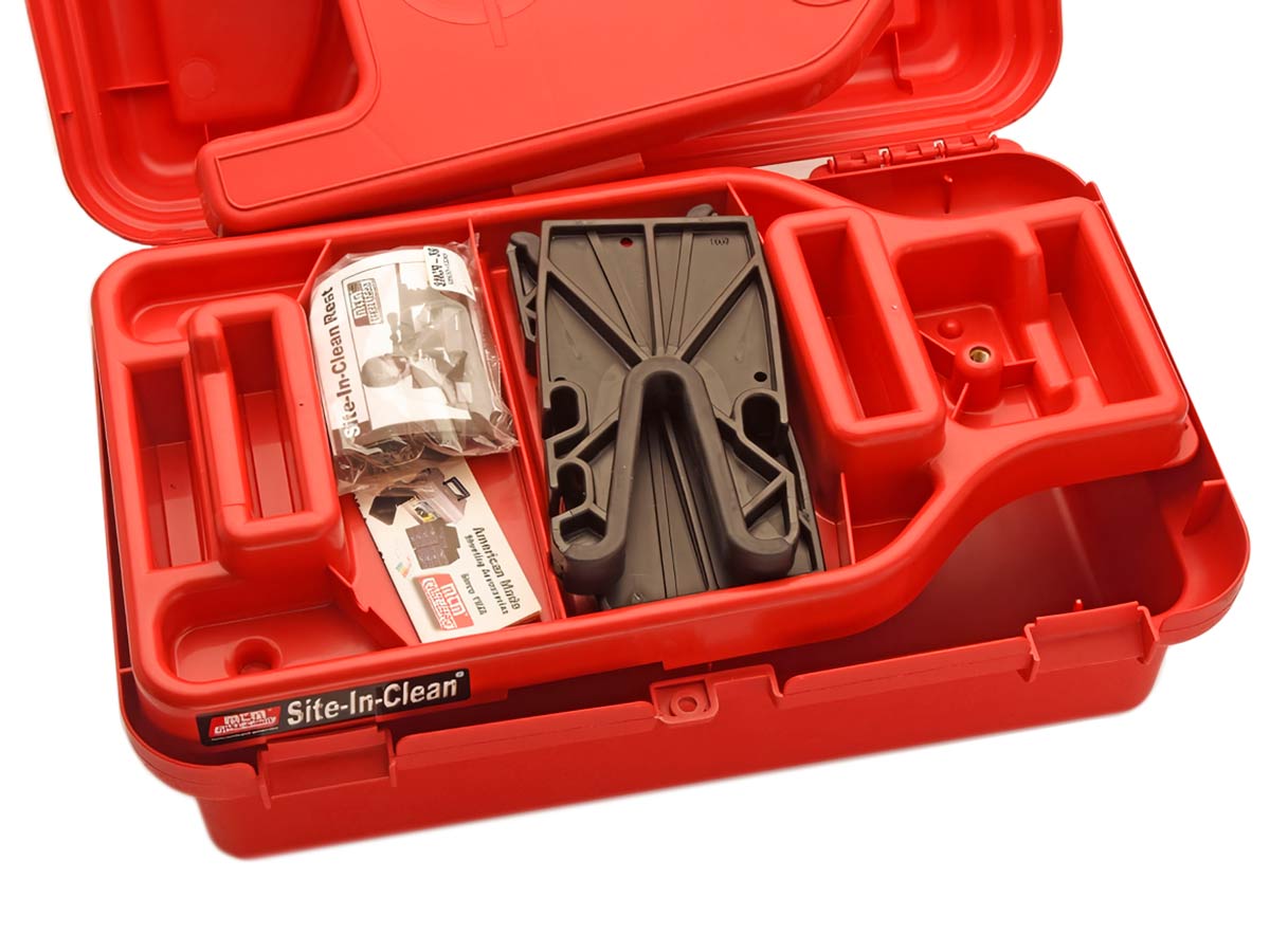 Кейс-подставка для пристрелки и чистки MTM Site-In-Clean Rifle RestShootig CaseУниверсальное решение: кейс для хранения и транспортировки аксессуаров + подставка для пристрелки и чистки оружия MTM Site-In-Clean Rifle RestShootig Case SNCC-30 позволит стрелку легко взять с собой всё необходимое. Удобное и продуманное изделие изготовлено из прочного ABS-пластика, выдерживает большие нагрузки, материал стоек к агрессивной оружейной химии.Подходит для чистки любого длинноствольного стрелкового оружия: гладкоствольного, нарезного, комбинированного. Содержит пространство для хранения оружейной химии и аксессуаров, подвесы для шомполов, съёмную подставку с резиновыми прокладками на стойках для расположения оружия без опасности его повредить. При транспортировке стойки складываются.Внешние размеры: 530x330x230 ммМасса: 3,2 кг
