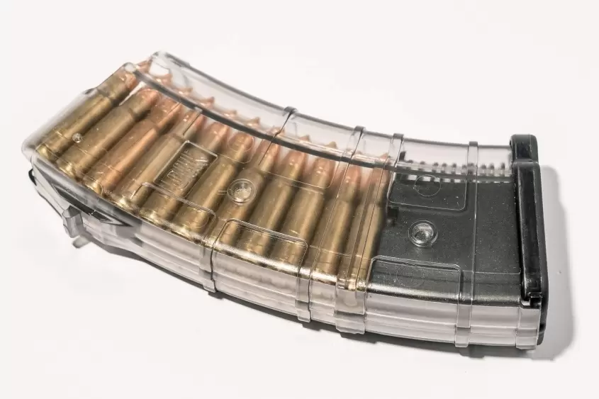 Прозрачный магазин для АК - разработка российской компании, значительно превосходящая штатные изделия по прочностным данным. Емкость можно уменьшить до 10 - для этого достаточно уменьшить корпус под выступом, предназначенным для установки тыльной крышки.