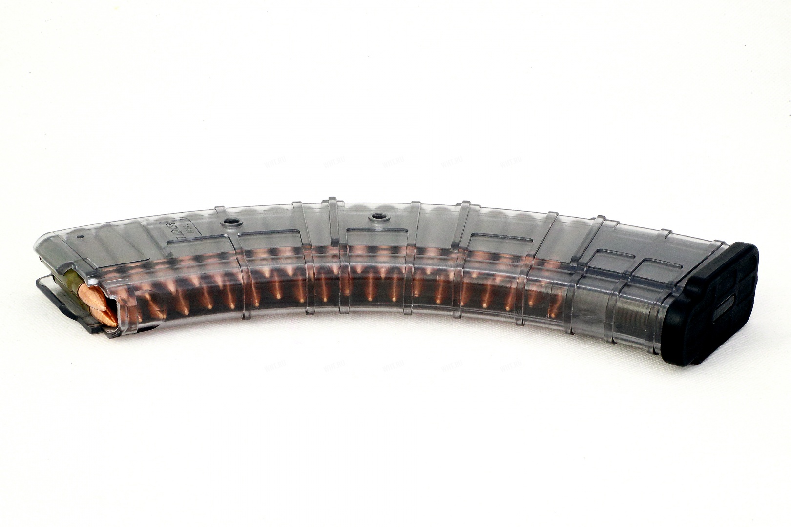 - Прозрачный магазин для Сайги МК оборудован противоскользящим рисунком, из-за чего не выскальзывает из рук и упрощает перезарядку;