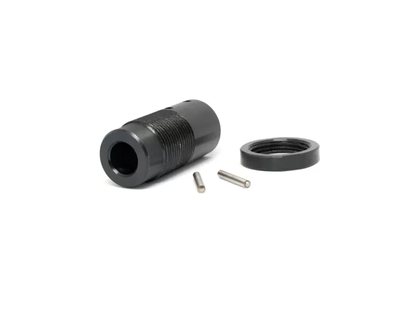 Переходник Вектор-7,62 VR-SVD на ствол СВД/Тигр, резьба М24х1,5, который требуется для установки ДТК VR-05S на самозарядную винтовку Драгунова и карабин Тигр, сделанный на ее базе. Поставляется в комплекте со штифтами (2шт) и контргайкой.