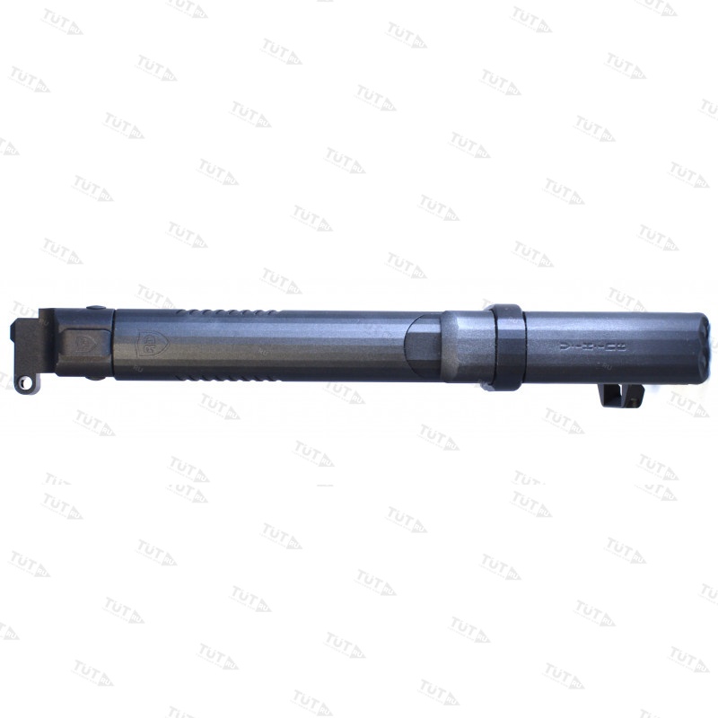руба приклада типа "A+" в сборе с адаптером АК100 представляет собой изделие, устанавливаемое на оружие АК типа с длиной ствола не менее 341мм (АК-102, 104, 105 и т.п.), имеющее стандартный складной влево приклад, и предназначенное для установки различных телескопических прикладов. Труба, благодаря распорной регулируемой площадке в задней части, позволяет установить без люфтов как приклады типа Mil-spec, так и типа Com-spec. На адаптере в нижней части размещено гнездо под стандартную QD антабку. В верхней части расположена планка типа "ласточкин хвост" для крепления откидной планки MOST от RUS Defense.