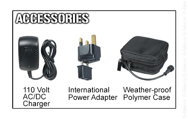 - Зарядное устройство AC/DC. Вход: AC 100- 240В, 50-60 Hz, 0,8А. Выход: DС 10,7В, 1A.