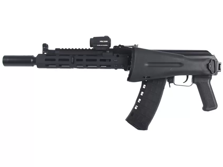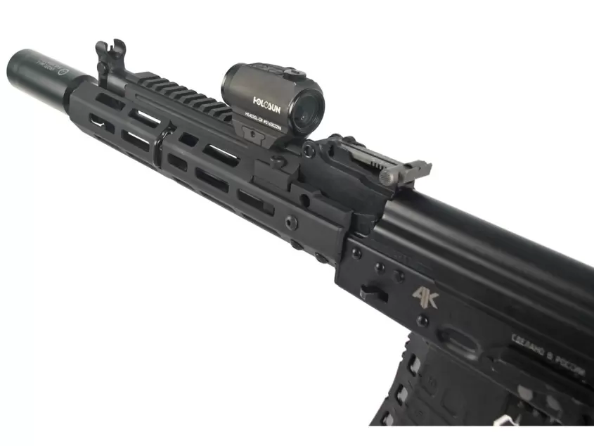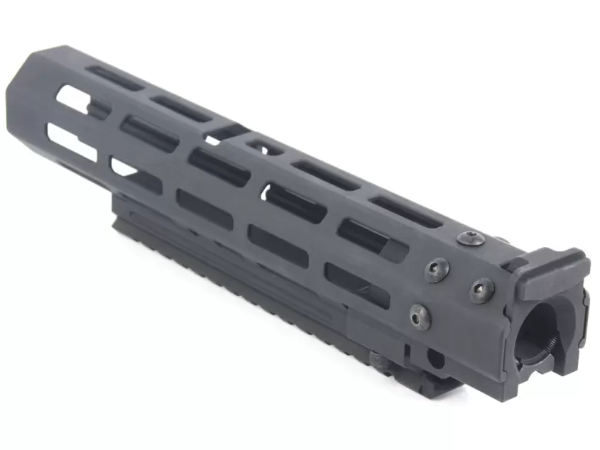 Удлиненное цевье SAG AK MK1 5 М-LOKпредназначено для установки на АК подобные карабины (Сайга/ Вепрь в разных калибрах). Устанавливается вместо штатного цевья. Основное назначение – повышение эксплуатационных характеристик, комфорта при использовании. Наличие дополнительных планок Вивера для крепления дополнительного оборудования значительно улучшит характеристики и возможности всего оружейного комплекса. Перфорированная структура намного эффективней отводит избыточное тепло, позволяя эксплуатировать оружие в более мягких условиях. На монопланку можно устанавливать оптические и коллиматорные прицелы, осветительное оборудование, лазерные целеуказатели и пр. Цевье SAG AK MK15 М-LOK отзывы от владельце получило только восторженные. Значительно повысились стрелковые характеристики, за счет прочного удержания возросла точность и кучность.