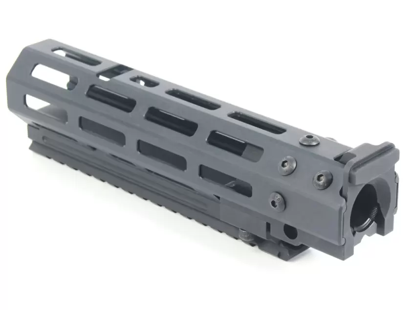 В цевье используется крепление M-LOK с конформным расположением слотов. Стандарт M-LOK является развитием тактических боевых решений и не выступает за рамки корпуса в случаях, когда слот не используется.